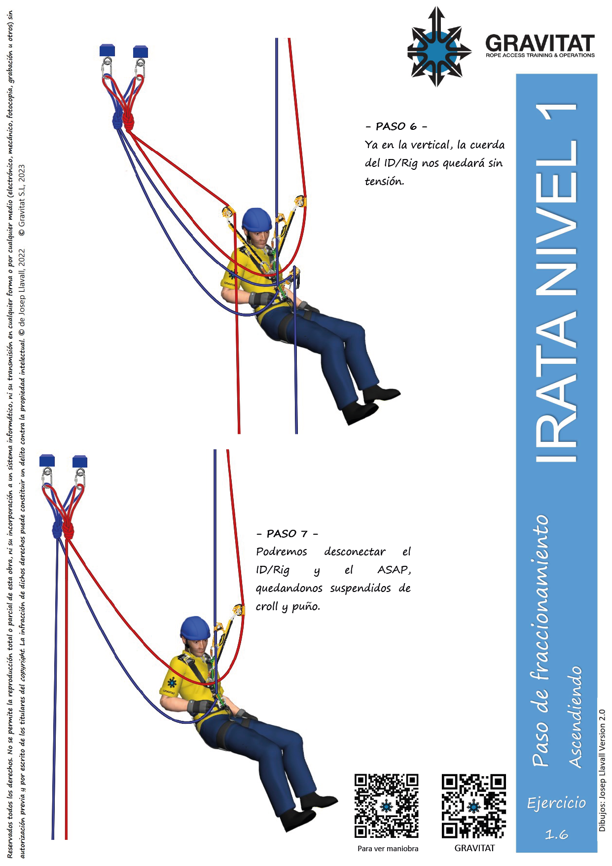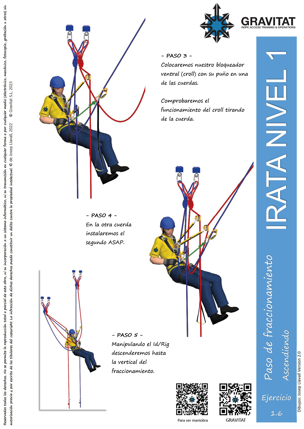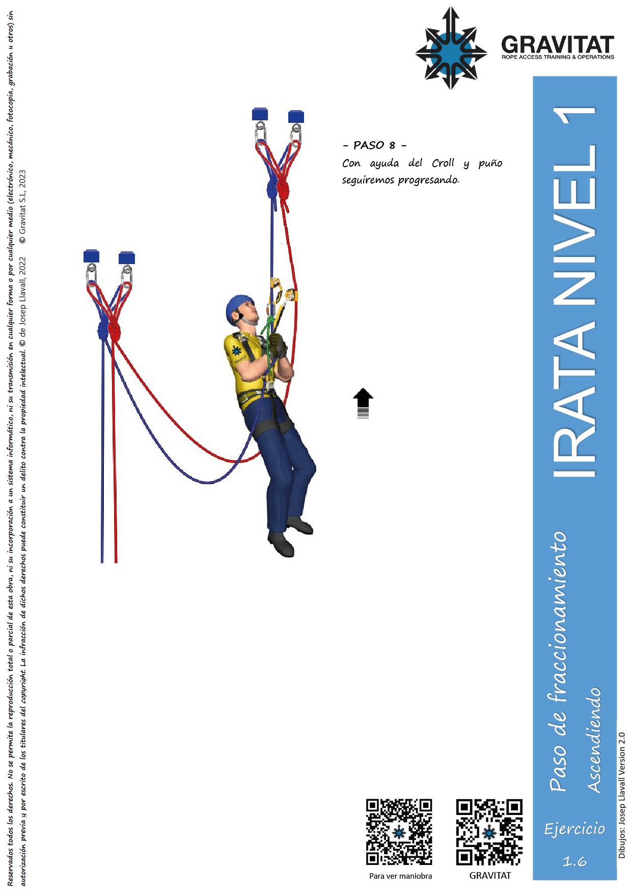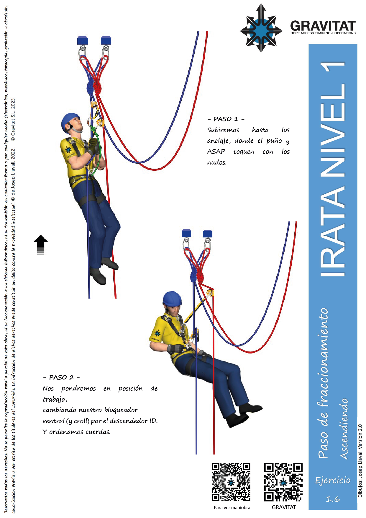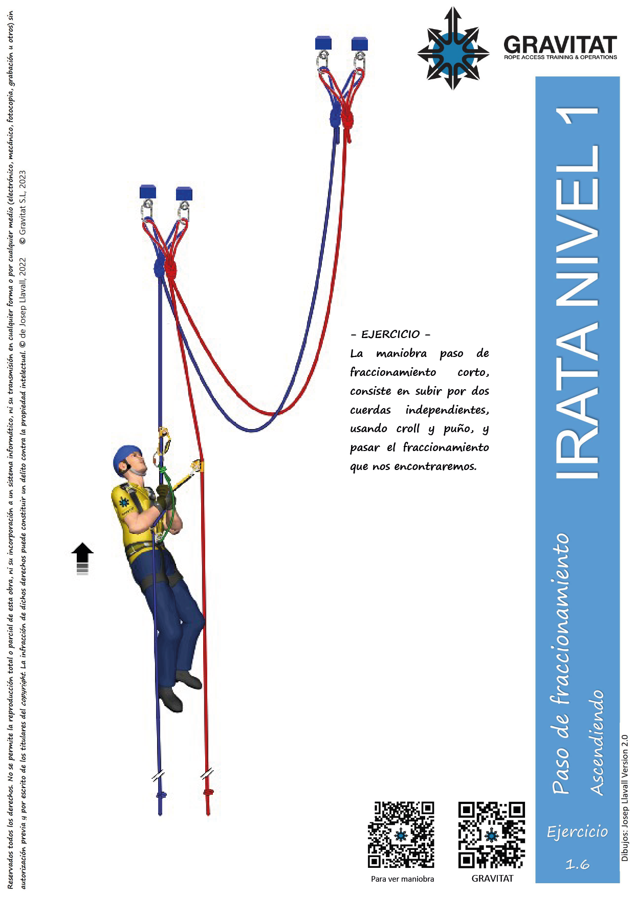 La maniobra paso defraccionamiento corto, consiste en subir por dos cuerdas independientes, usando croll y puño, y pasar el fraccionamientoque nos encontraremos.