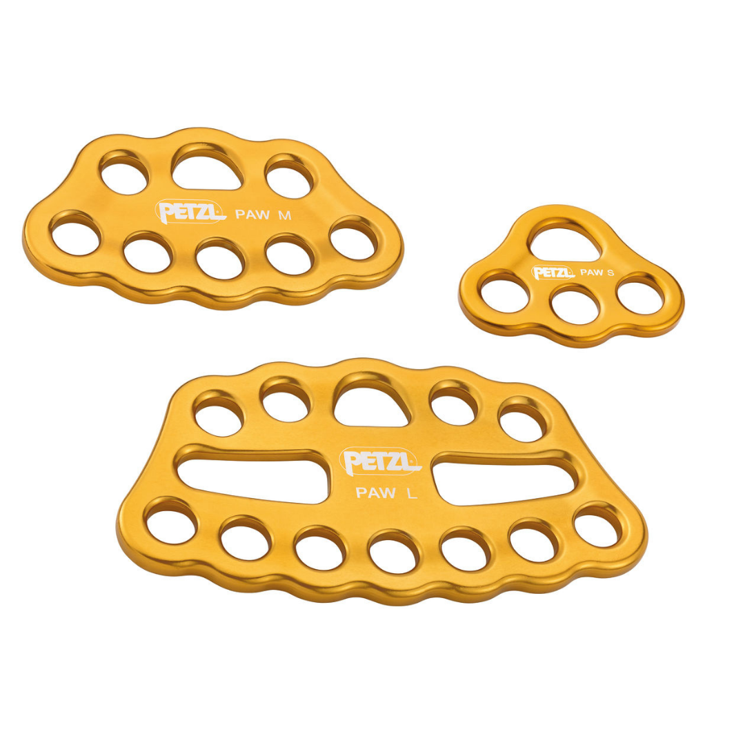 Disponible en tres medidas, la placa multianclajes PAW permite organizar una estación de trabajo y crear un sistema de anclaje múltiple. El diseño de los orificios es compatible con el paso de las cuerdas o de las cintas para una conexión directa. Fabricado en aluminio forjado, ofrece una excelente relación resistencia/ligereza.