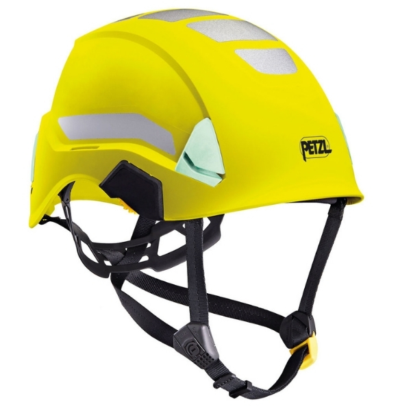 uy ligero, el casco STRATO ofrece un porte confortable, gracias a los sistemas CENTERFIT y FLIP&FIT que garantizan una excelente sujeción del casco en la cabeza. Con un barboquejo de resistencia modificable, es adecuado tanto para los trabajos en altura como para los trabajos en el suelo. La carcasa exterior cerrada protege contra los riesgos eléctricos, las salpicaduras de metales en fusión y las llamas. La integración óptima de una linterna frontal Petzl, de una pantalla de protección, de orejeras y de múltiples accesorios lo hacen un casco completamente modular, que responde a las necesidades adicionales de los profesionales. La versión de alta visibilidad está provista de una carcasa exterior de color fluorescente con clips fosforescentes y bandas reflectantes, para una visibilidad óptima del trabajador, de día y de noche.